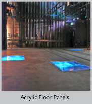 These clear trap lids were created by mounting 25mm thick acrylic to purpose made steel frames and set into the stage’s existing openings. |