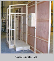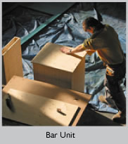 A timber bar constructed from plywood. The scale model for the piece can be seen in the foreground. |