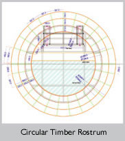 A dimensioned drawing showing the layout for the timber structure as well as the position of the articulated lid and its working mechanics.