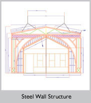 Construction plan indicating not only the dimensions for the piece but the different dimensions of steel involved in its manufacture and suggested lifting points for the structure