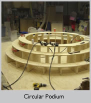 Plywood formers are spaced apart and secured at regular intervals to create the shape of the circular rostrum. |